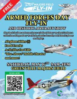 We are excited to once again host our annual Fly-in! This year, it is the Armed Forces Day Fly-In and Historic Aircraft Show! Come out and experience aviation history up close by exploring a collection of legendary warbirds, classic aircraft, and historic airplanes, which will be on display. Some of the aircrafts will be available for rides, as well! We've also partnered with the Commemorative Air Force to bring these planes, as well as the "Rise Above" Mobile Theater!