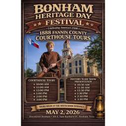 Come be part of Bonham Heritage Day and celebrate local history in one of Bonham’s most treasured landmarks.