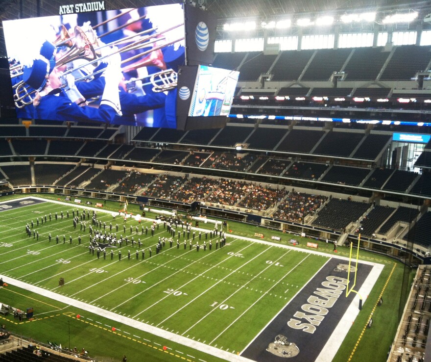 And we're underway at AT&T Stadium. If the Lions football team plays as well as the band did before the game, A&M-Commerce is set. That's one good-looking band.